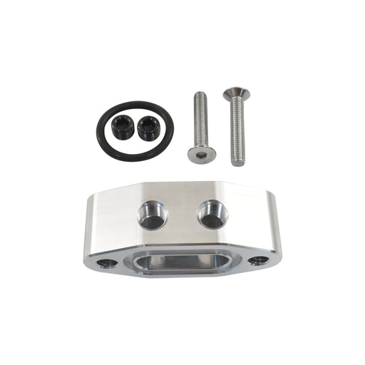 CalflowBillet aluminium CNC-machined LS Oil Port Adaptor has Two (2) x 1/8 NPT threaded ports for oil pressure gauge, turbo feedlines and One (1) x M16-1...